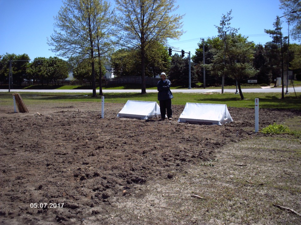 View of my patch completely broad forked with hot houses warming the planting sites and walking boards on the far left up against a plot maker.