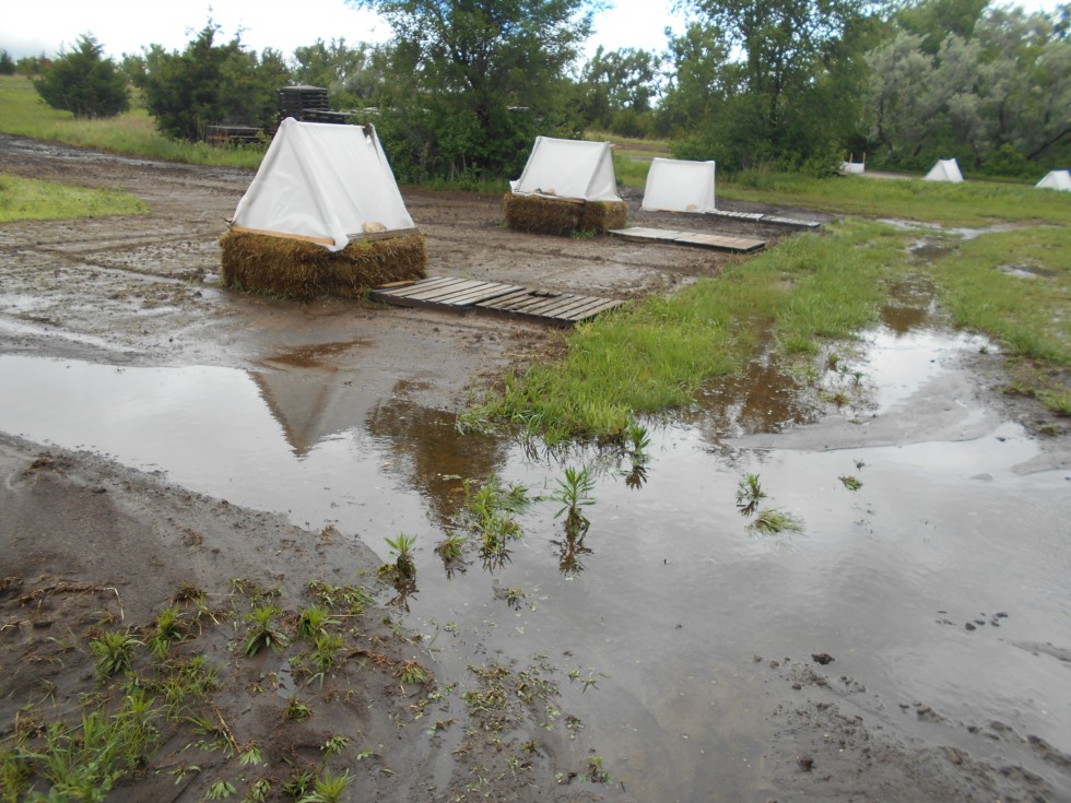 Very wet here. But the melons are protected from the forces of nature. for now These are raised beds from straw bales.