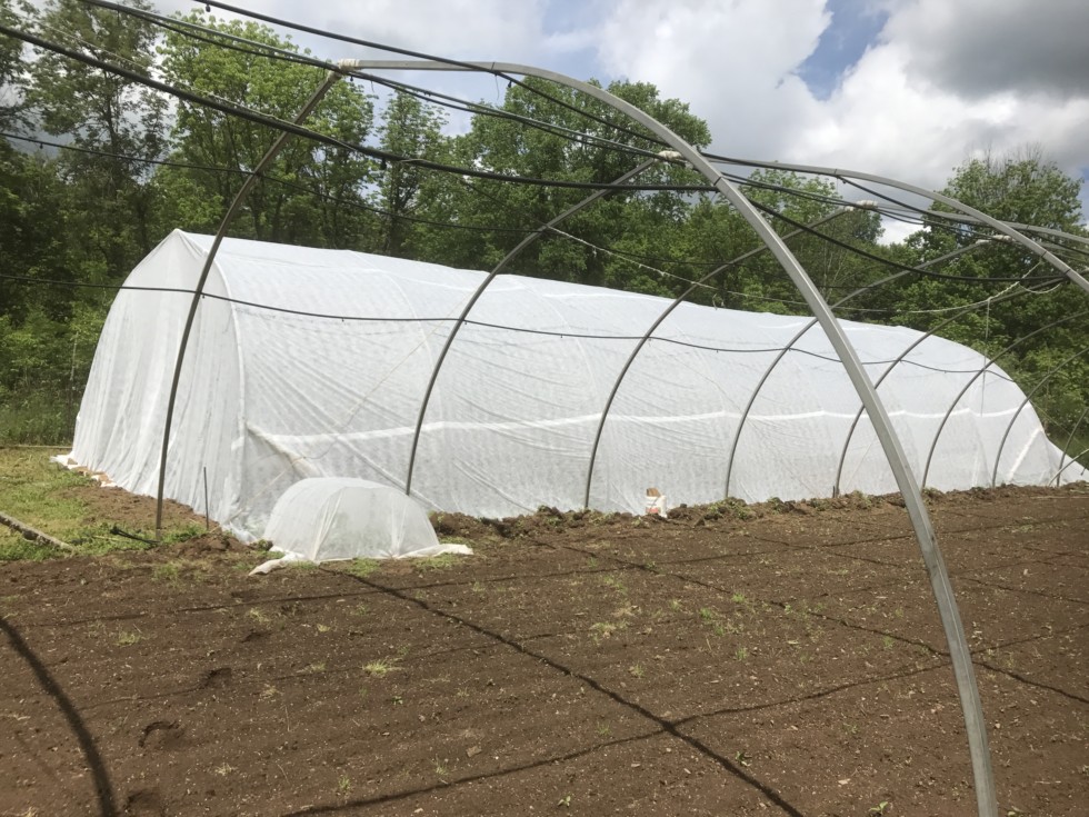 The finished dome #1. Immediately put some ropes criss crossing over the top to keep it from flapping around much, which leads to holes and eventually rips. Doing the other dome this evening or tomorrow morning.