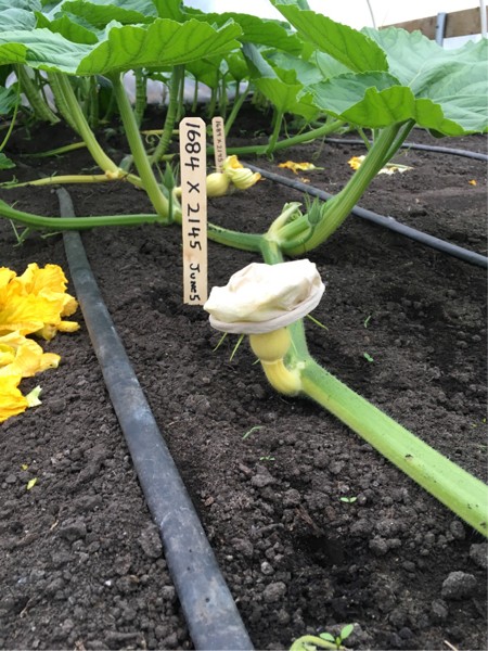 1684 Crews x 2145 McMullen This is the chosen one. Cool and rainy this morning. Good for greenhouse pollinations because the temp will be perfect. Convenient that both were ready at the same time too.