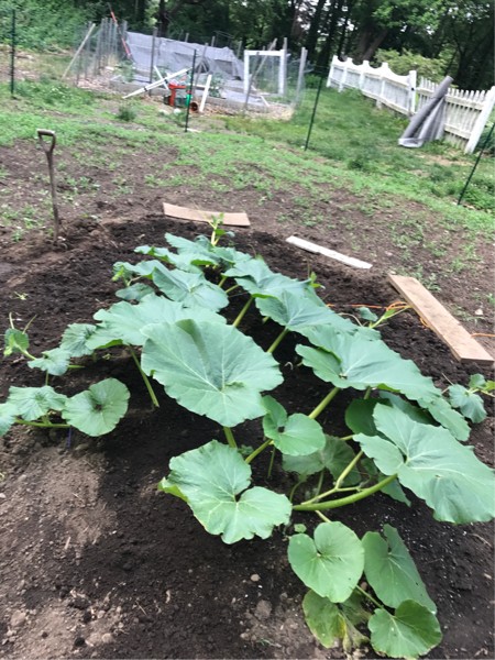 No squash vine bugs have been spotted nothing. Very good sign. I've spotted some roots already coming out of the soil so I quickly added some more soil on top. This is a strong plant With a strong root system. 1980 is cruising along as well but much smaller. The 1980 is just about a week behind the 1233.5