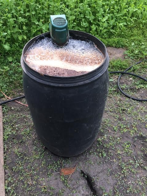 50 Gallon batch of WOW Wonder Brew Compost Tea is ready for drenching, at completion of tea I add liquid Azos to it.