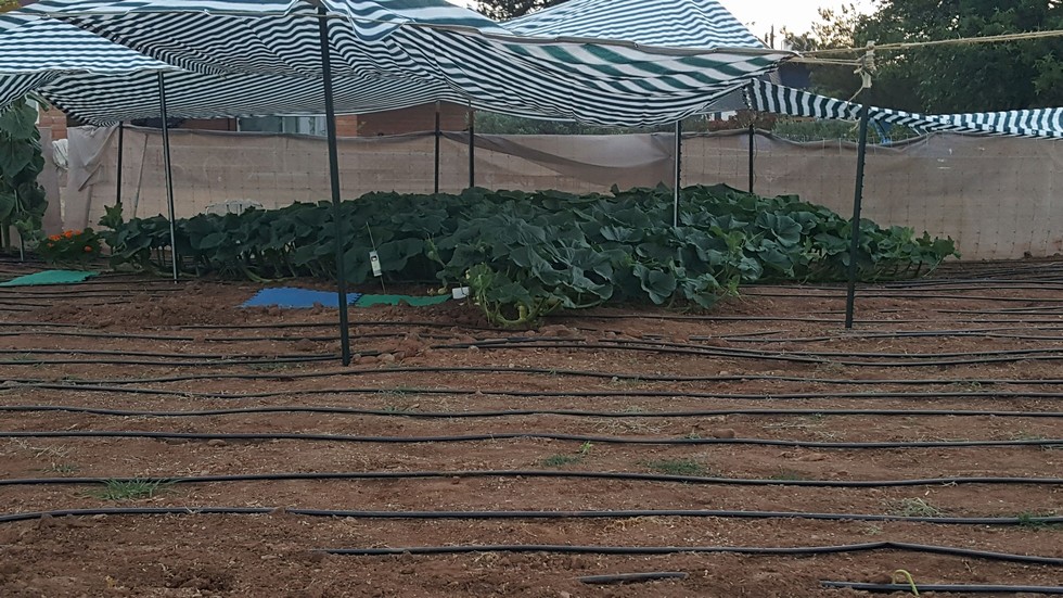 975.5 plant Putting up more shade today. Pumpkin is at 90 degrees on the skin surface during the hottest part of the day at 100 plus. I'm working on bringing that temp down.