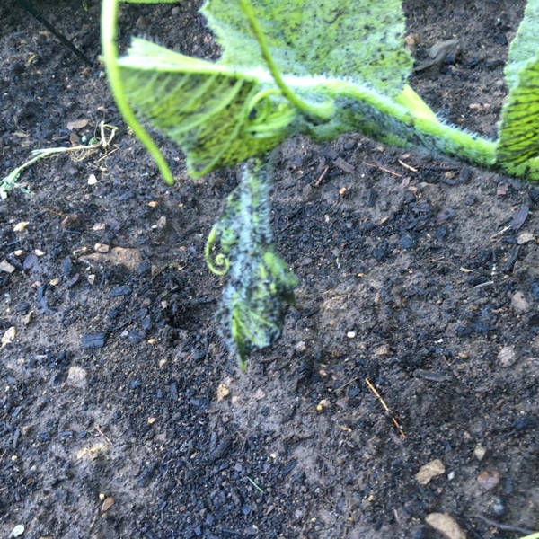 Here is what happened during the storm. Here is what it looks like on all the vine tips. Main is covered too. All I need to do is let it dry off in the sun today then try to mist the dirt off or shake the vine very lightly. Some leafs by the stalk also got damaged. Picture of that in next entry.