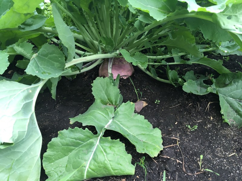 Rutabaga, I have a few that are much bigger. They like it wet and cold apparently. We have had some hot daytime temperatures that have almost killed the cabbages,but the rutabaga seem to tolerate that some.