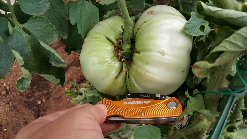 My biggest tomato so far. This had two the culled one was 1.3 . Yesterday morning my other mater had a rot spot it was 1pound 11 oz. Starting to see red two days ago. Trying to figure out the best time to pick them for weight. Been reading remember the discussion just haven't found it. All plants are 4.3 Shanoha Rumor has it there is a guy secretly growing the 8 pound tomato seeds in phx. 486 Baker wonder if he is starting to feel a little heat on the bulls eye..