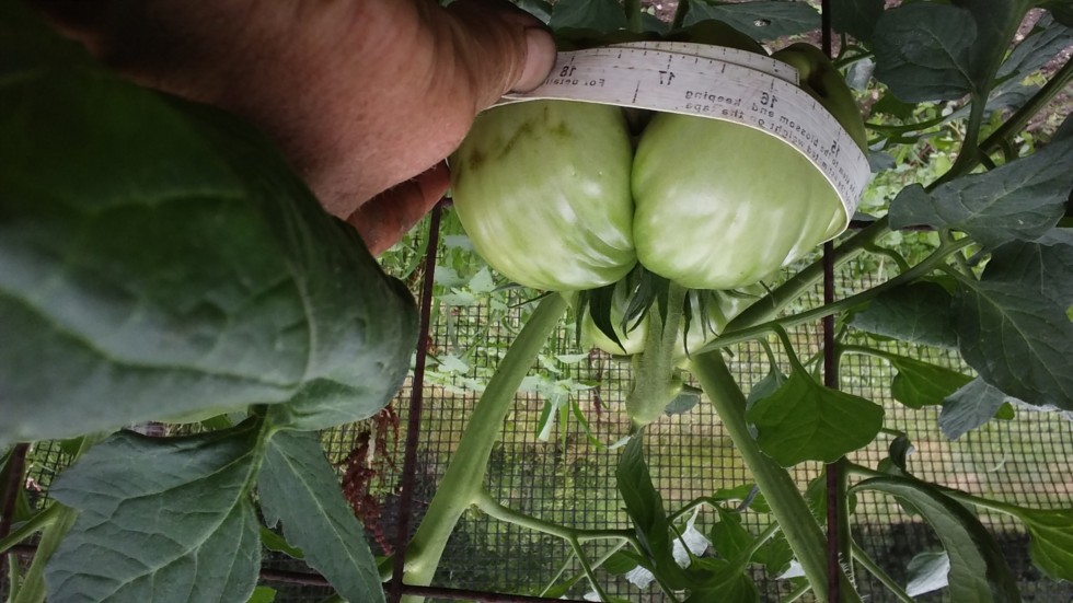 I have about 6 tomatoes near this size all about 16 D A P. Nothing special but hope they will finnish over 5 lbs.