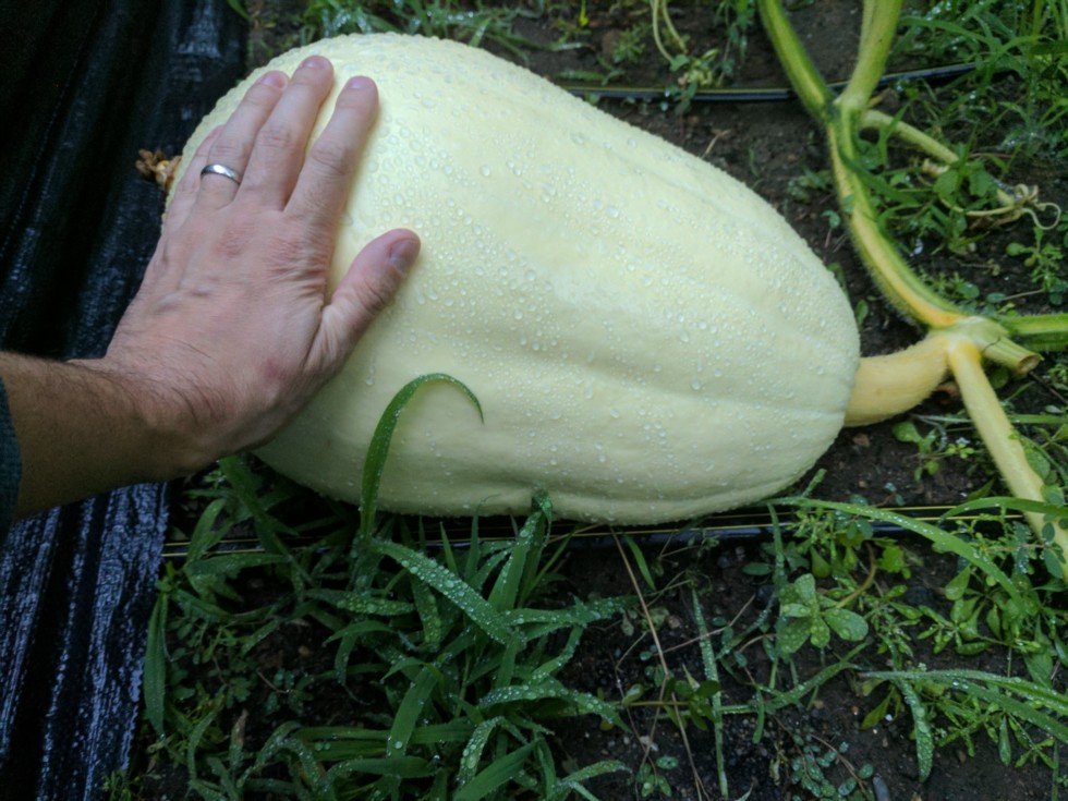 This is a 2252x2066 on the main vine. Pollinated July 9th, so DAP 15 today. It has a butternut squash shape, and not too much plant behind it, but it's my best pumpkin at the moment!!