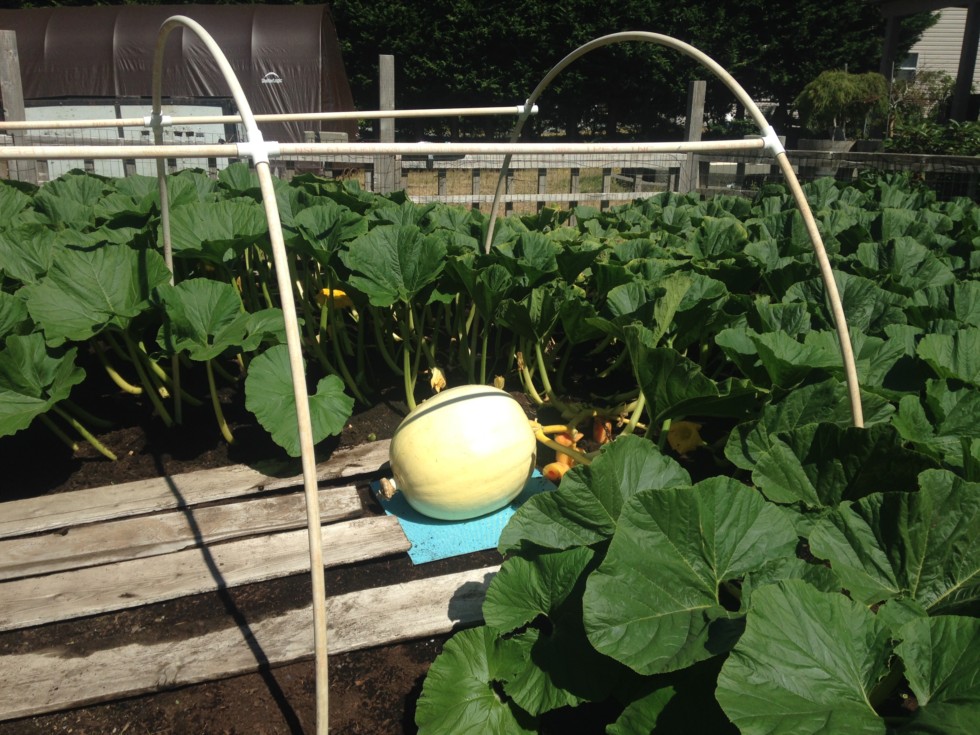 The patch is almost fully filled in and in nice shape. After two years of gummy stem (I think) I got my hands on some good fungicide. So far no hint of mildew or aphids. Fingers crossed the plant stays healthy.