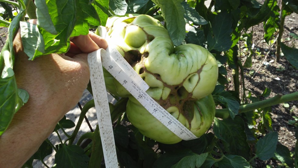 O.k. the tape may have got hung up in the back of the tomato on that last picture, but this is the real measurement of that same tomato from the back side of it. (0: