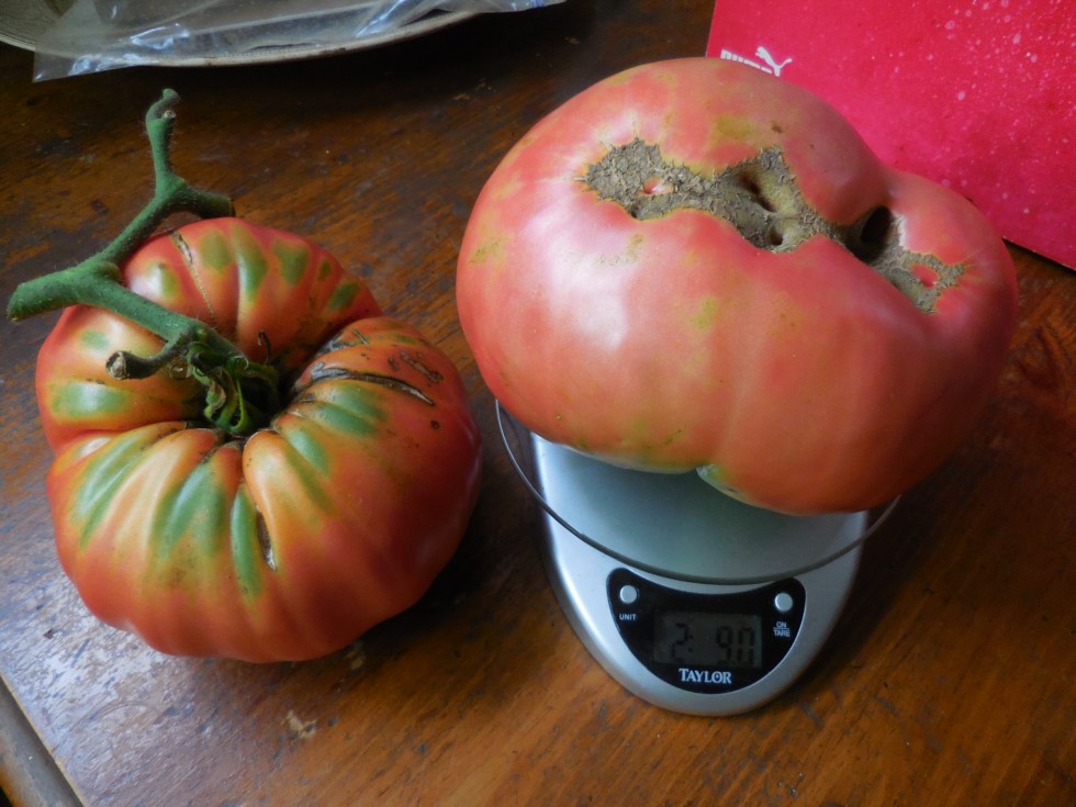 Starting to get a lot of nice Slankards now. One earlier one was 4 lbs. Most are in the 2.5 - 3 lb. range. These are 2.9 lbs. Pretty, very solid and great to eat.