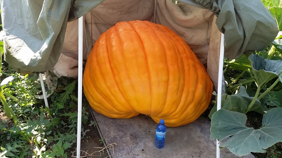 Slow...slow....slow. still growing, average 10 lbs a day. 276 ott or 472 lbs. Looking more and more loke her mama everyday. I have figured out that my heavy clay soil in the patch is developing cracks and swallowing all the water I can give it..... about all I can do is water apply tons of water. Looks like I have fall patch work to do.