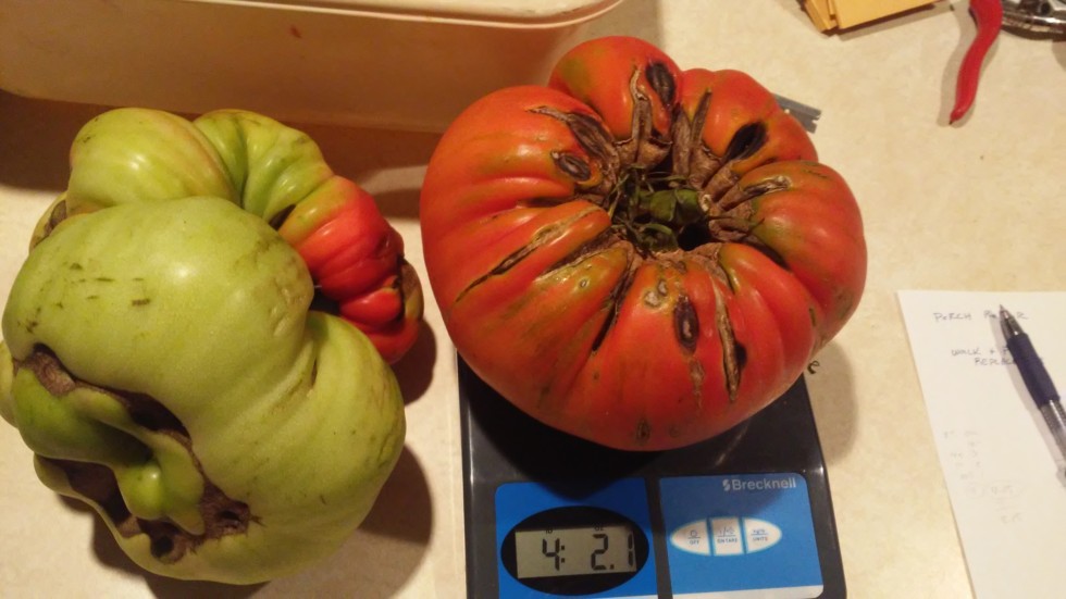 Here are two tomatoes that i would like to take to st johns weighoff next week !!! Hope this one stays over 4 lbs by next week ???