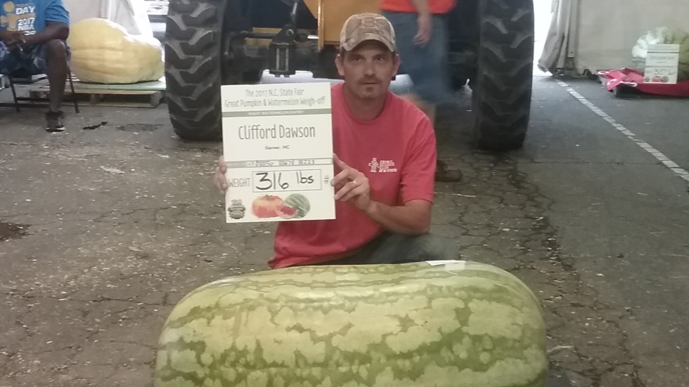 We had an exciting finish in the melon competition as Todd Dawson set a new North Carolina record with his 316 pound melon, just edging out Chris Kent by a half a pound.