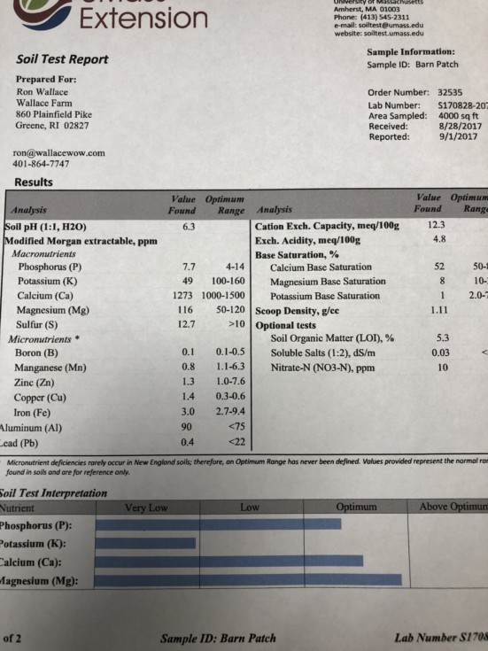 Here are the soil test results from our new patch, these are typical results for our sandy loam soil.