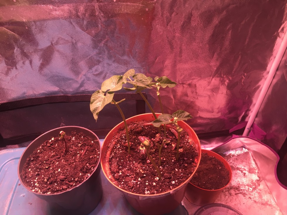 Ok. Here are some garden beans I have going. They are doing great under the LED light! I also have some more that I planted but did not sprout yet. Those are a different kind.