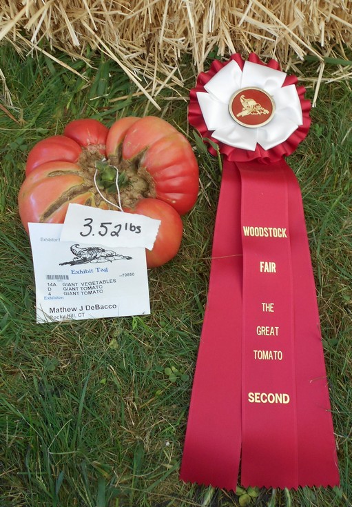 I also tried some giant tomatoes this year and it seems I was a very consistent second place finisher. I planted the tomato plants at the edges of my side by side pumpkin plants. This year I did not lose any pumpkin plants during the main growing season so my tomatoes plants were competing with the large leaves of the pumpkins. I also experimented with some different pruning styles and did not notice a big difference this year.