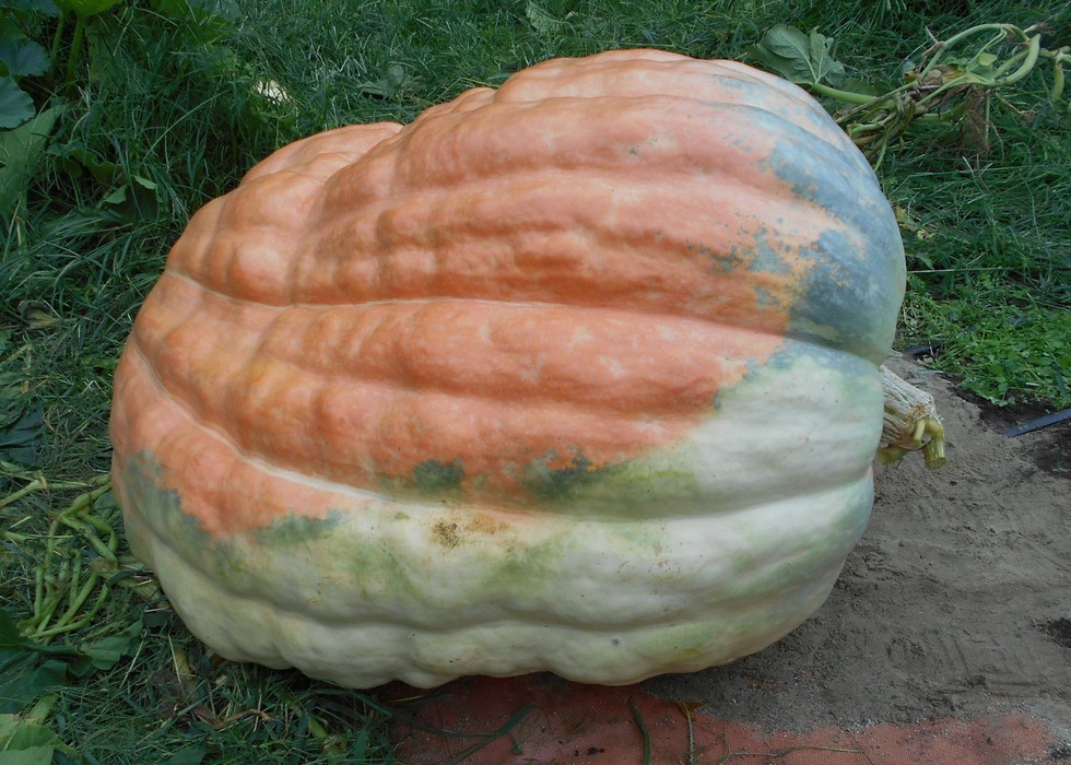 Well, I cannot win them all. This pumpkin developed an odd soft spot at the blossom end that I tried to get under control, but it started at a split that kept getting deeper. This pumpkin went heavy which is very consistent for my 1662.0 DeBacco seed but the color was a little bit of everything. I will say that during the majority of the season this pumpkin was white in color and only in the last month did it start to turn orange. (At least most of it turned orange;-)