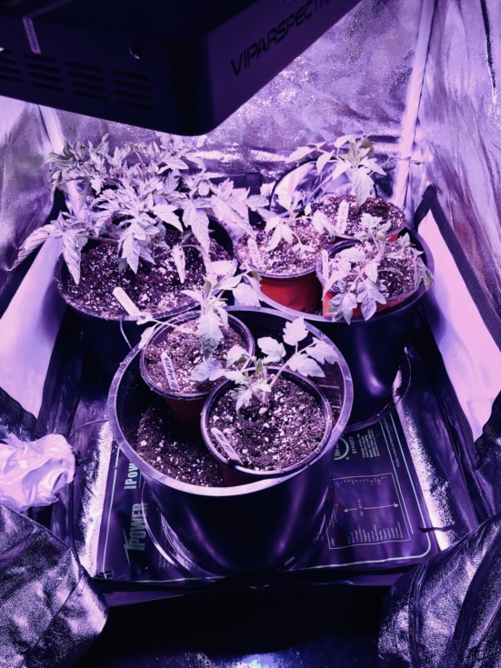 I up-potted all of my tomatoes except the grafted ones. The Bigzarro plant has been placed in its final 5 gallon pot. It is in Fox farms ocean forest potting mix. I amended it with 10 tbsps of feather meal. I dusted it’s rootball with Azos and mykos and gave it a good watering.
