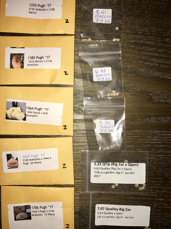 I got my Pugh pumpkin seed lot and Maccoy tomato seeds from the auction. Look at that 1564 Pugh! What is IT? Looks pretty wacked out to me. Is a Spumpkin a Squash / Pumpkin? There were some pretty good 2145 McMullen genetics in this lot. I Like the looks of that 1385 Pugh (1810 Werner x 2145 McMullen), good coloring and genetics for sure.
