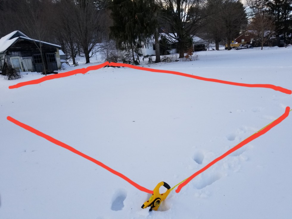 Hard to tell size from the picture but here is the basic patch perimeter for 2018. We are expanding to 36 feet x 60 feet (2160 sq. Feet) as soon as the New England weather allows for it lol