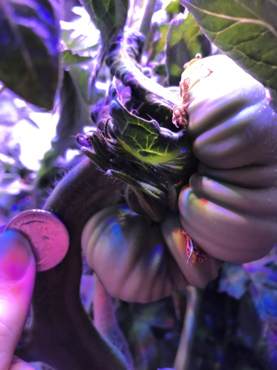 it is getting bigger, but my issue in the tent is that in order for heat to build up in the tent I have to turn off the fan and the humidity builds up. I think that is what is contributing to the Blossom End Rot issues. I have been spraying Calcium chloride to keep it at bay.