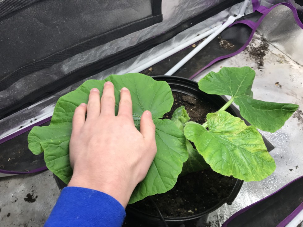 Hand comparison with a leaf!