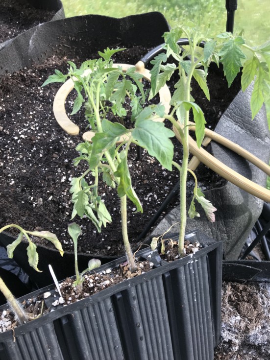You can see the third from the right plant is really freaked out. It still has its original leaves and is developing some strange nodules.