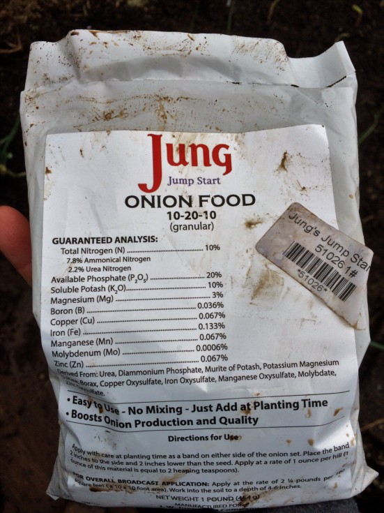 I also received onion bunches from Jung's. They were tiny so didn't use them, only their fertilizer at planting. Needless to say I have many many left over onion starts I will stash around the garden for the purpose of eating.