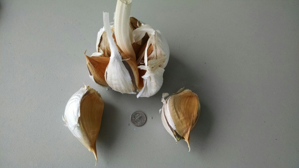 Yesterday I was looking at some things I have traded for this winter and decided to do a little digging around, ha I was being punny, about what it takes to grow crazy sized elephant garlic. I had Megan take a pic of the bulbs with a quarter for scale. Although it looks like I will be late getting them in the ground this year, I still want to give them a try