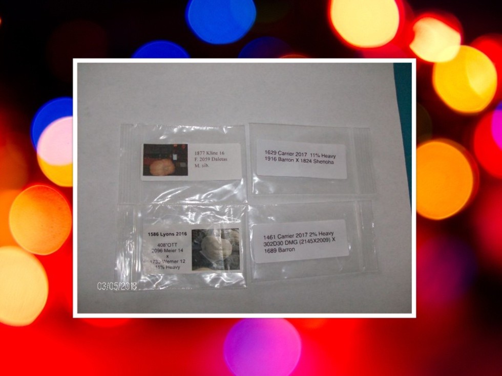 My 2018 growing plan - 1877 Kline, 1586 Lyons, 1629 Carrier, and 1461 Carrier. All seeds @ 24 hrs in seed pots. Hoping for a quick geremination. No snow on groun. Hoop houses up and anchored down. I will set heaters out today to keep houses warm at night. We are having 65-71 during the day and 29-32 at night.