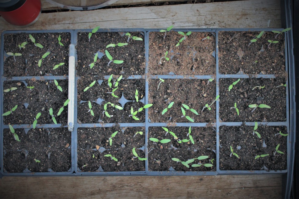 Happy naked gardening day! The selfie was just way too close for this site so you'll just have to take my word for it. Tomato's after 9 days. Most everything up with few disappointments. Except 1/4 7.07 Qualley's up. Another is trying. All the Foss/Spaziani/LaRue/Treece genetics up minus a couple. All MegaMutts and ZacHearts up. Both 5.95 Konieczny Domingo's up (lower left 2 and 3 up from the corner... Except its offspring the 8.22 Marley Domingo is nearly a no show, lower left 1/5, right next to its parent the 5.95 Konieczny. So I'm figuring if you can get these up it will be a special seed and plant. I dug down a little and see a couple more trying to emerge. At least I got one. The rest are sleepy, but I have hope!