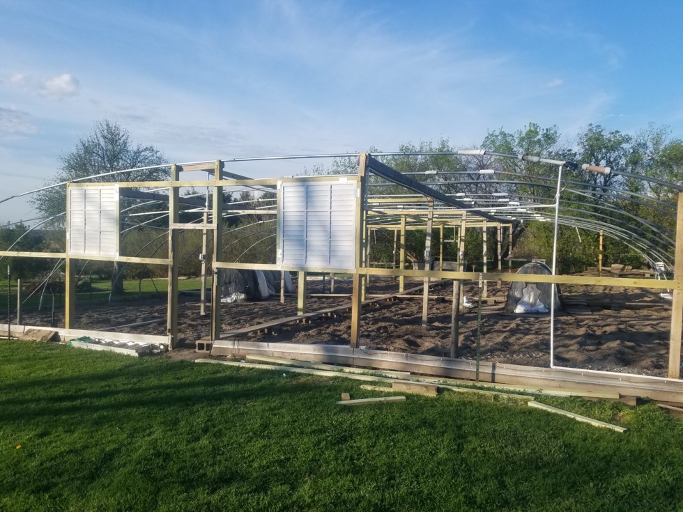 Plants are all still alive, the 1965 withers quicker than the other 3 in the hoops so I gave him double shade cloth. Got one end almost done had to re route some wiring fix some pvc for the misters. Put 2 - 4' plastic vents in this will give the plants some fresh air with west and south west winds. All these 2×4's are getting wiggle wires. More screen securment the Better!