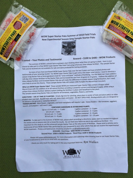Super excited to try these! Two packs of WOW extended release starter paks for season long WOW influence! One lucky tomato will get these and one lucky giant bell pepper.
