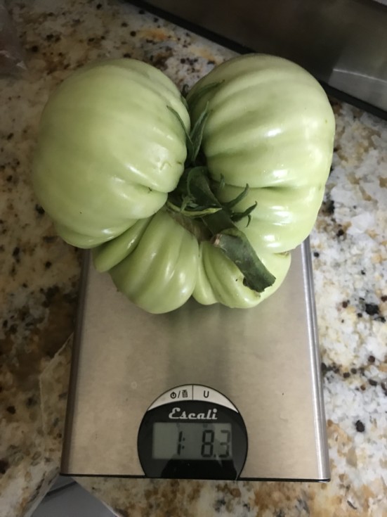 The poor Spaziani "Toe"mato. Came close to my personal best of 1lb 10ounces, but not quite at only 1lb 8.3 ounces. it is still green and hard.