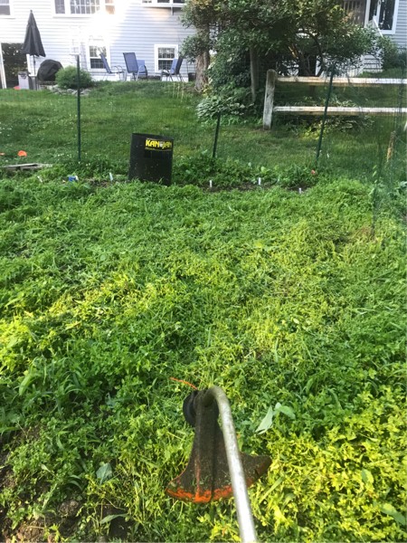One good way to get the weeds down in the patch so they are manageable to get up lol