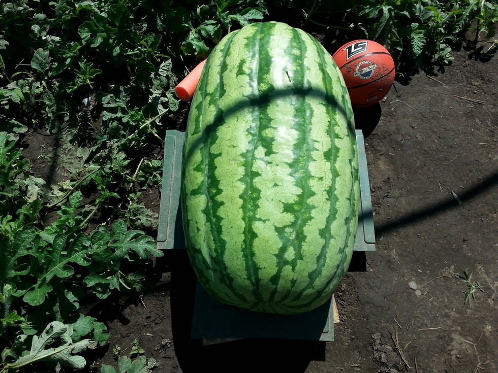 That green plastic sheet Fiona is sitting on is 18" across. That dragon fly that landed on her was big. Shes back to putting 5-6+ lbs on daily. I had a roofing looking at her and when he left he was telling still know way is the melon really,lol. Love that. She's simply getting big. She looks like another big melon with the Kent lineage in her. Her mother was 297 Kent x 291 Kent.