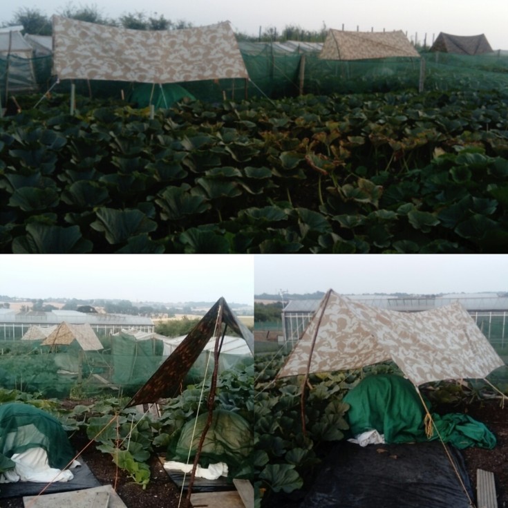 Ridiculous heat forecast the next two days so made the decision to put up the tarps for some shade, patch looks full army style now! To give you an idea of how hot and dry it's been, the UK is currently experiencing the dryest summer since 1976. We haven't had rain since April here in Essex. Although this isn't a problem for me as I have an irrigation system, the lack of rain has meant less secondary rooting for me, as I'm unable to water by hand and keep all the nodes damp.