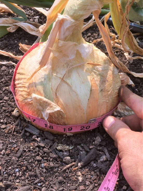 I reached my goal of 20" onions! These are the biggest damn things. What to do with them all. About 35 left from 18"-20". I will leave a couple of the largest in the ground to produce seeds next year.