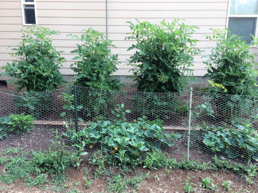 WOW season long starter pak test. San Marzano tomatoes. Plants are producing tomatoes now. Again, these plants look better in this simple side of the house garden than my main garden. Only water except one plant with the starter paks.