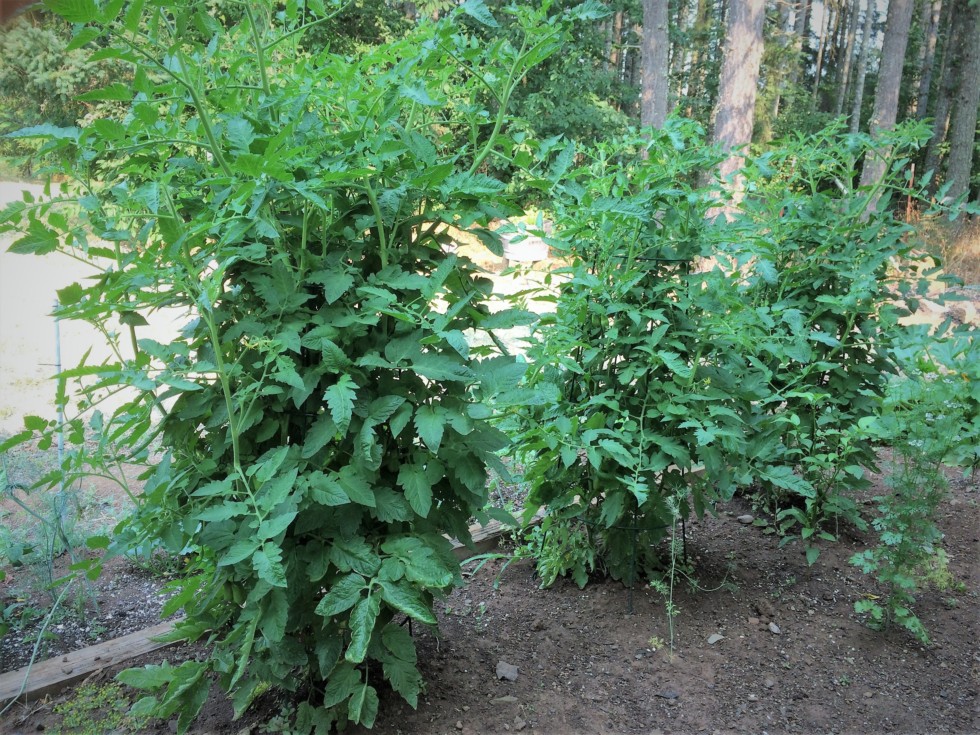 A better perspective of the San Marzano tomato plants, one with the WOW season long starter pak. Mmmm...which one?