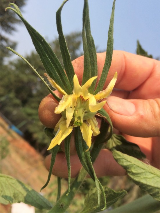...and another flower. Hopefully it takes. Brutal 95F-100F heat is not ideal for pollination's but the Wixom tomato is super special and will resist the power of the sun.