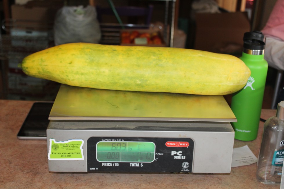 Giant cucumber 9.54 lbs and 25" long.