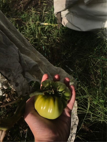 Last giant tomato off the 5.31 Ellis. Going to go to the topsfield fair
