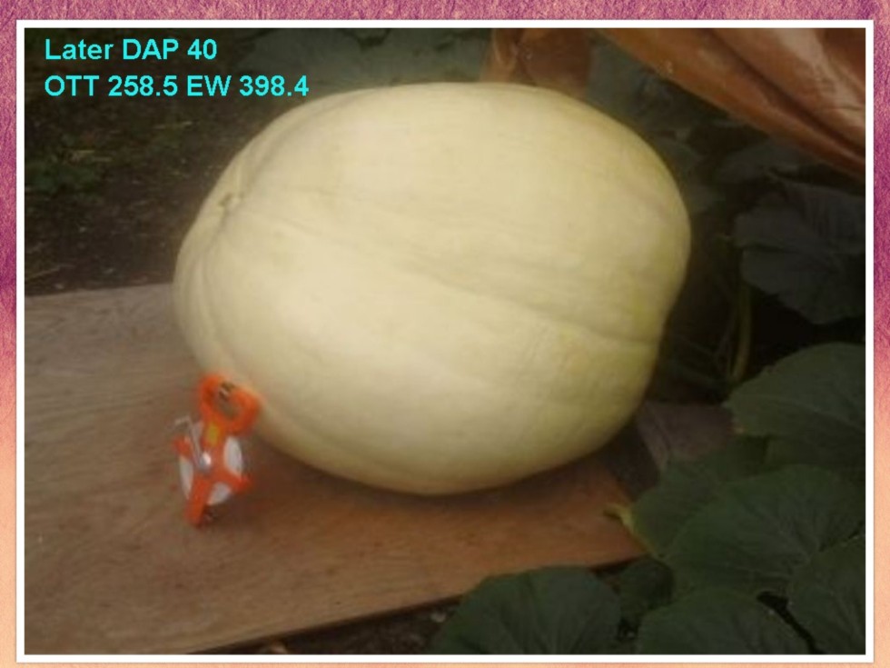 Kline 1877 x w/self "Later" DAP 40, OTT 258.5 EW 398.4. 54 degrees at noon today. Peapag stop growing at 984 lbs.