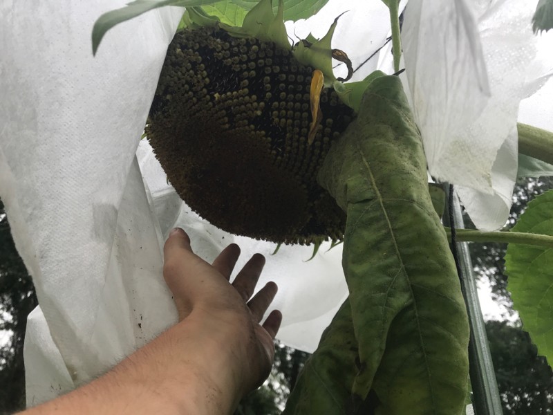 Checking the head every day to make sure it’s still healthy. This sunflower is from mine last year that I brought to the fair. Makes me happy that it’s my own seed