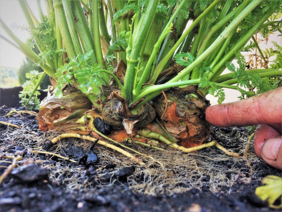 The day before pulling the carrot (it's not what you are think'n Q-tip). Watered it one last time. It started growing again after harvesting the seeds so it is cracking and growing. Really likes the cooler weather. Pretty excited. Tried to dig down to get a look but it's just a mass of roots. I just hope is longer than 1 foot long or it's anti-climactic! Will put it on the table at Bauman Farms Weigh-off in a few days.