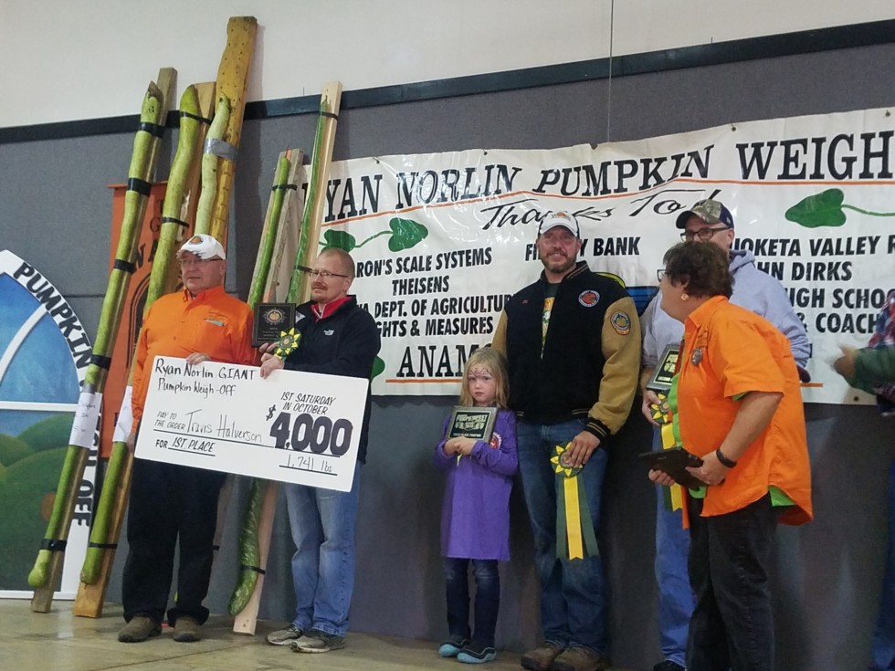 Great day in Anamosa was hoping to just make top 5, ended up 3rd with 1442.5 lbs good enough for largest Iowa pumpkin for 2018! 2 years in a row! My first ever long gourd entry was good enough for 1st @ 105.5"