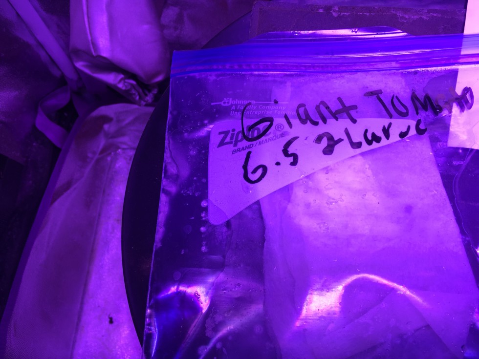 Giant tomato is back in her bag!! After searching for her in the soil for 15 min I found her! Lost her then found her once again! Reason for this is I want to put her directly in the Rock wool. Root is still attached so no damage to her, she will now be able to go in hydro quicker!