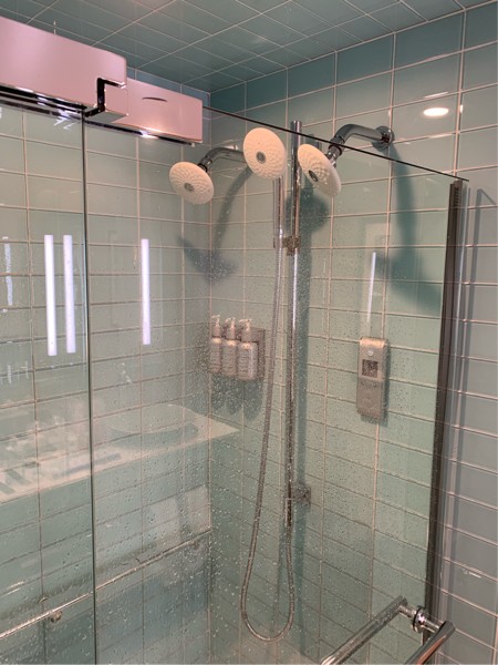 In case you are wondering about the Kohler Lodge shower posts this is it. Three shower heads, digital water heat with instant hot water, and more. I want one now.